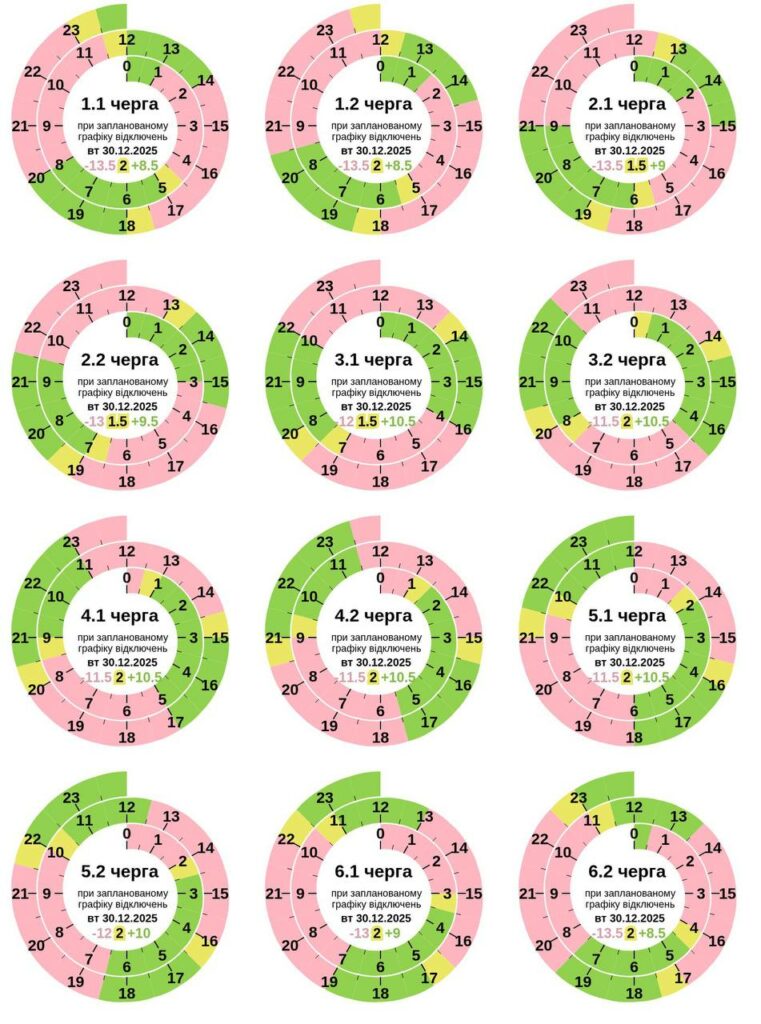 Паралельно з 0:00 до 23:59 30 грудня діятимуть графіки обмеження споживання електричної потужності для бізнесу в обсязі пʼяти черг.