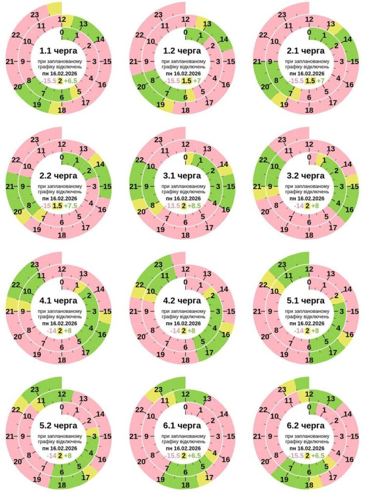 Паралельно з 0:00 до 23:59 16 лютого діятимуть графіки обмеження споживання електричної потужності для бізнесу в обсязі пʼяти черг.