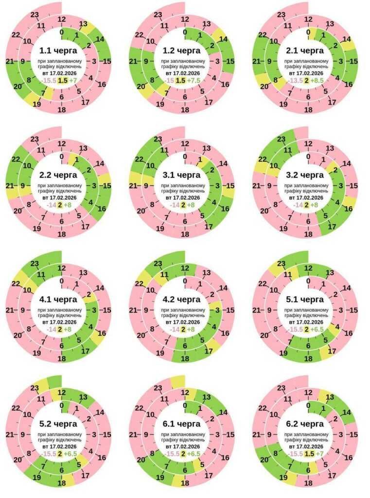 Графік погодинних відключень світла на 17 лютого: