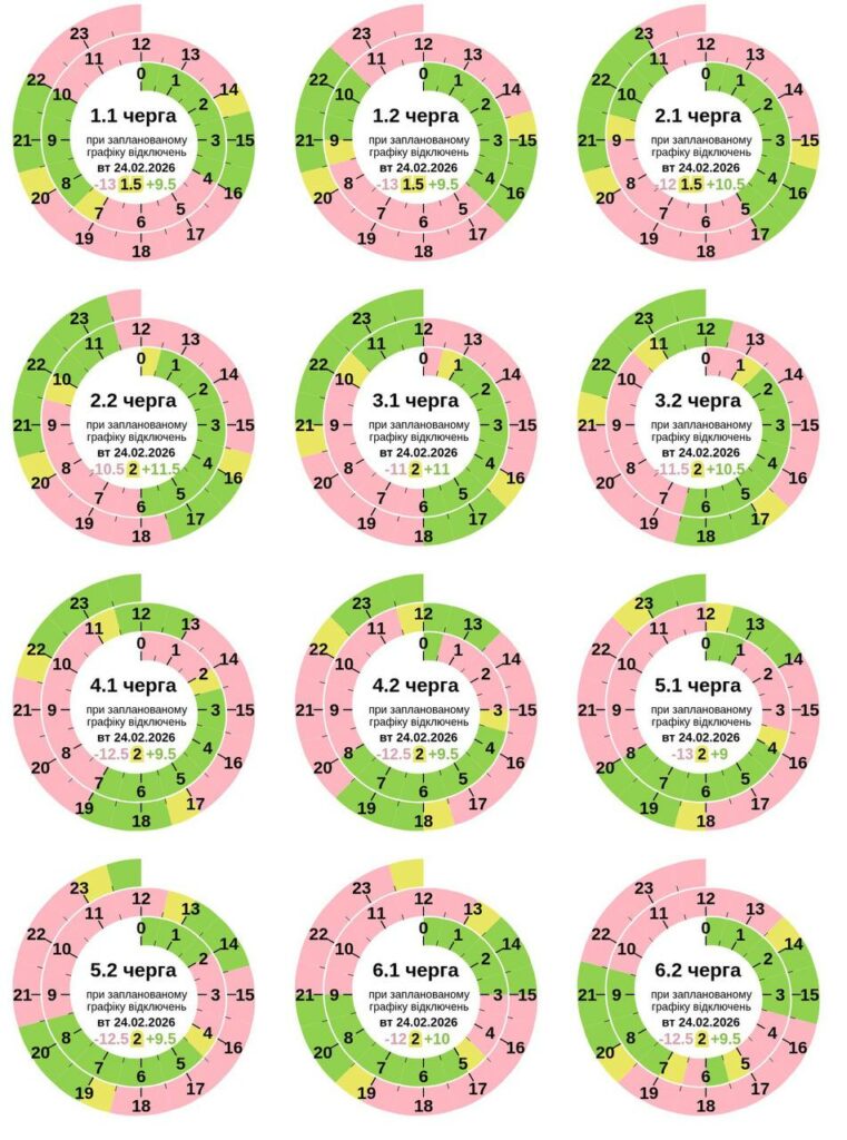 Паралельно з 0:00 до 23:59 24 лютого діятимуть графіки обмеження споживання електричної потужності для бізнесу в обсязі пʼяти черг.