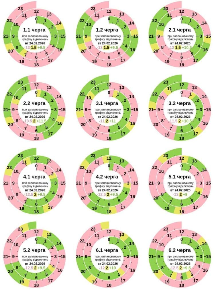 Графік погодинних відключень світла на 24 лютого: