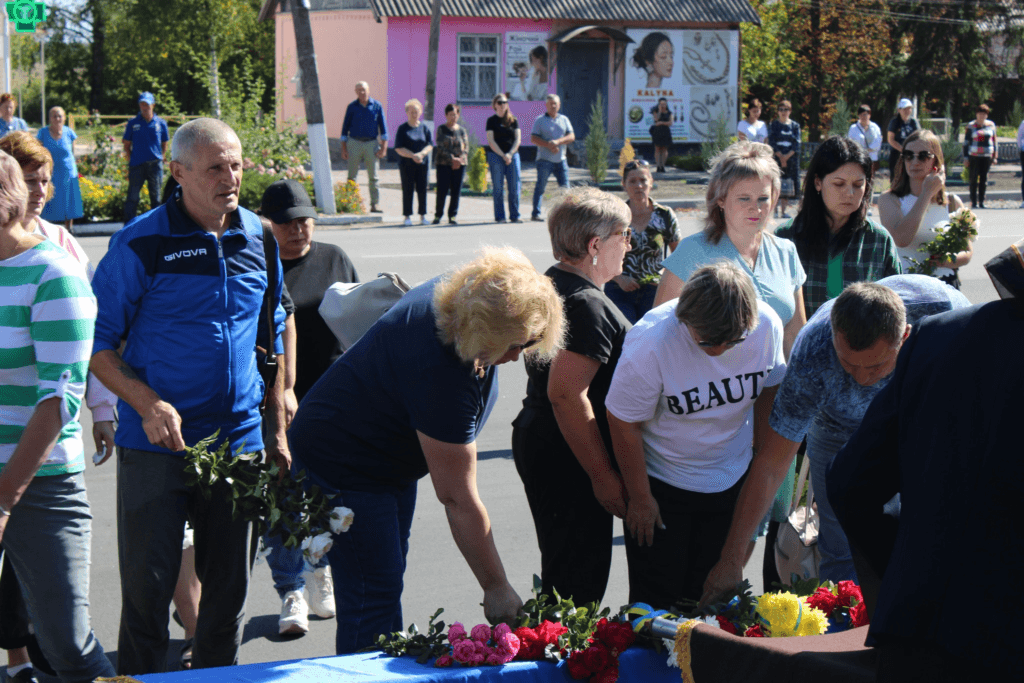 Схиливши голови рідні, близькі, знайомі та односельчани востаннє прощалися з воїном. Олег Синиченко народився 11 вересня 1983 року у селі Слюзівка. З початком повномасштабної війни воїн приєднався до лав захисників.