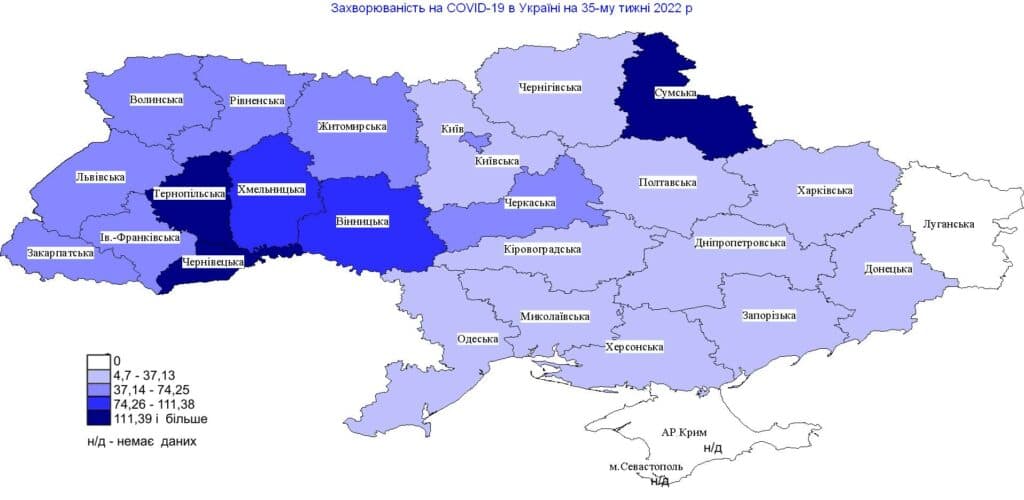 З 29 серпня до 4 вересня показник захворюваності на COVID-19 становив 42,4 на 100 тисяч населення – зростання на 41%.