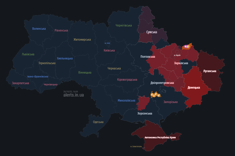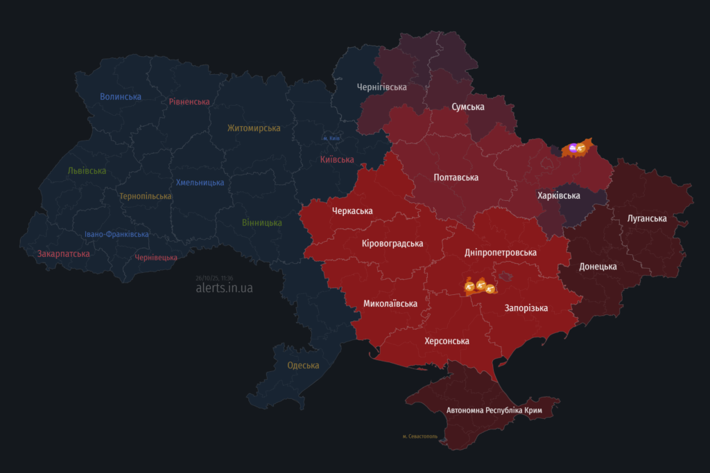 Мапа тривог 26 жовтня: