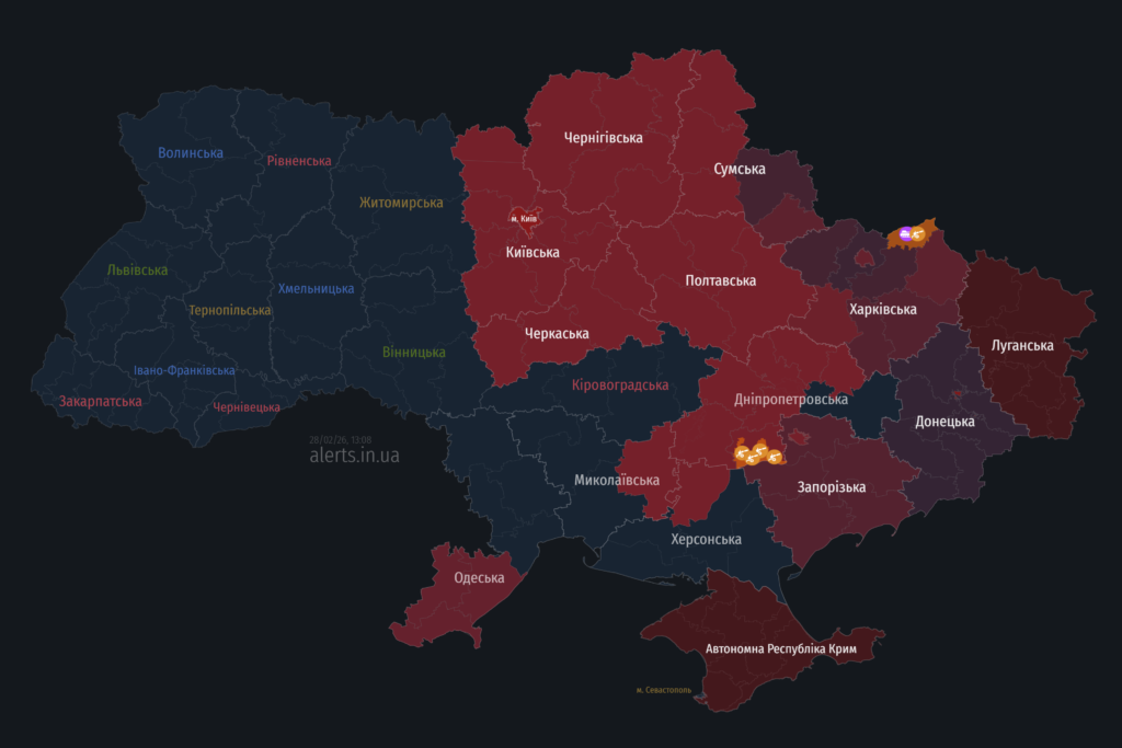 Загроза балістики для Полтавщини: мапа тривог 28 лютого