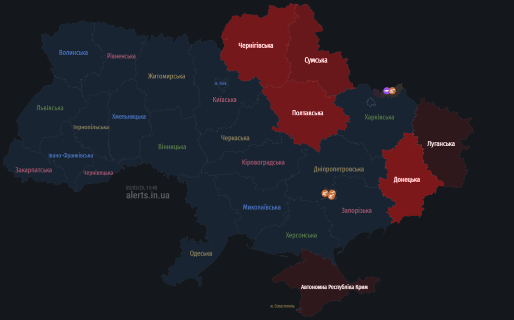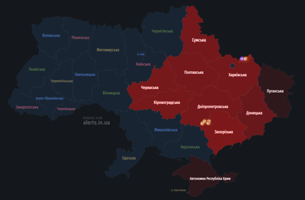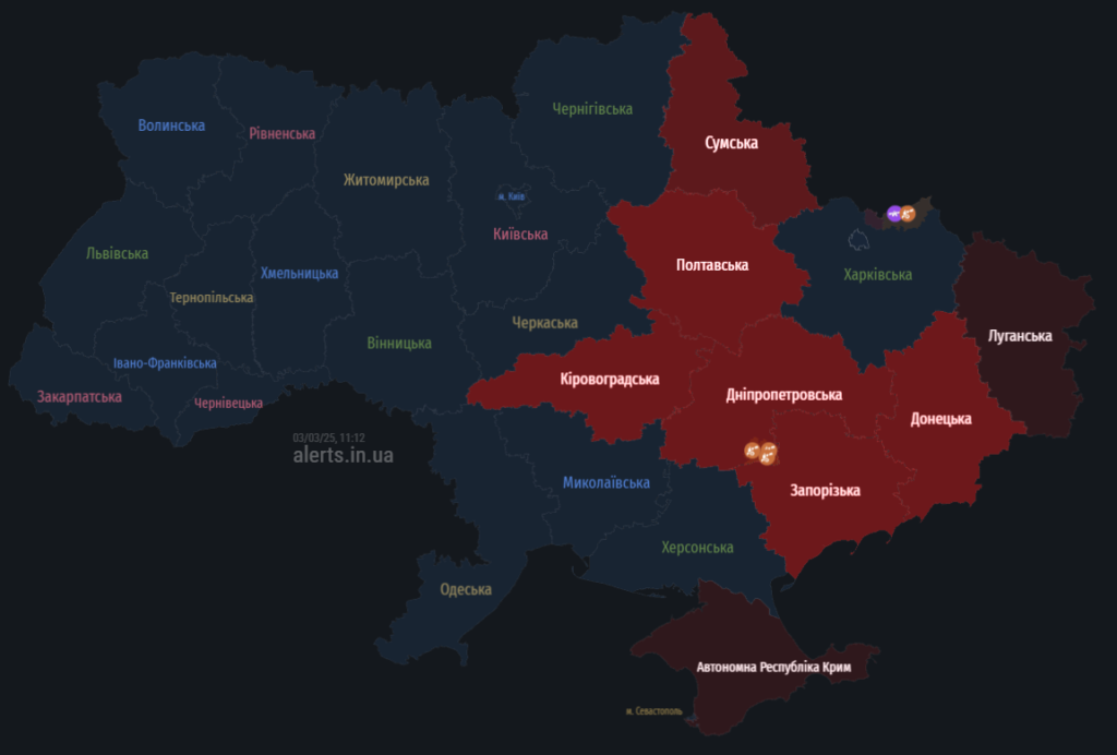 Загрози для Полтавщини 3 березня: мапа тривог