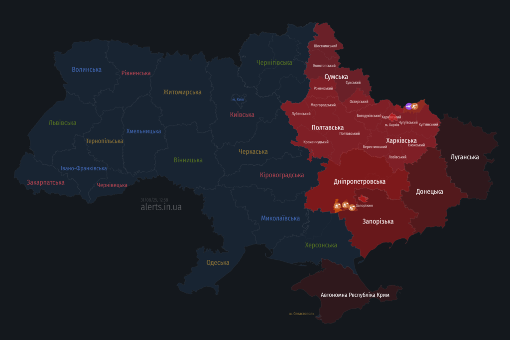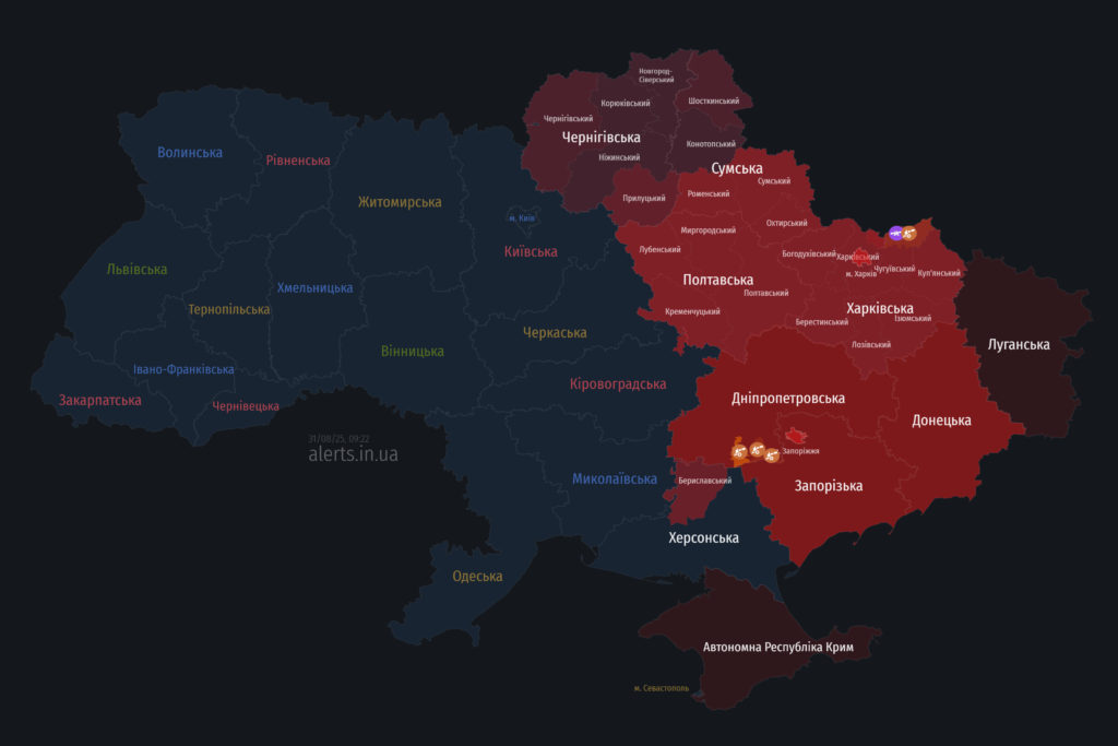 Мапа тривог 31 серпня: