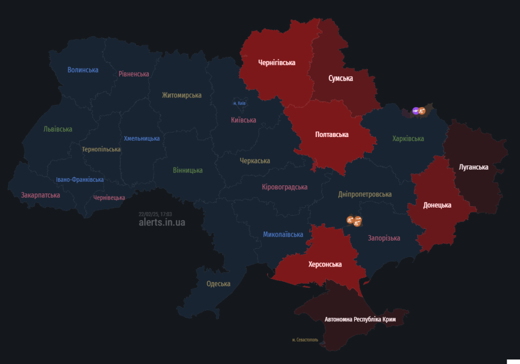 ЗМІСТ писав, що у ніч на 22 лютого російська армія випустила по Україні 162 «Шахеди» та дрони-імітатори.