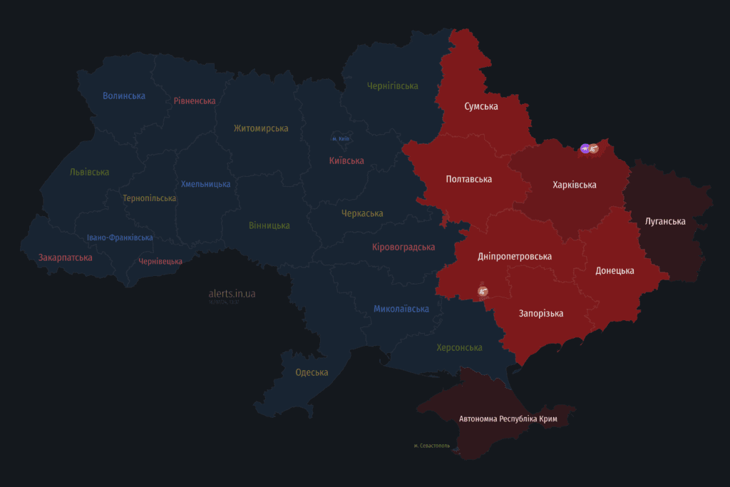 Мапа тривог 16 липня: