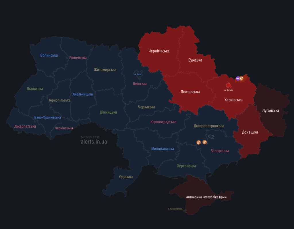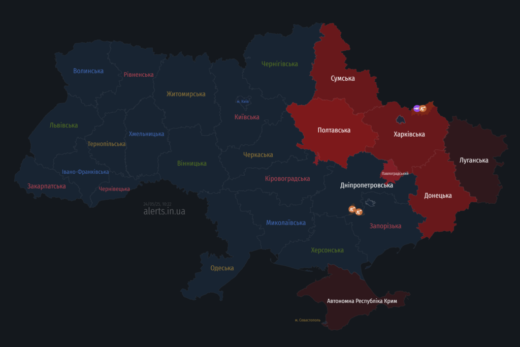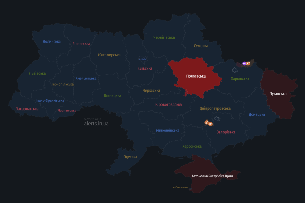 Загрози з повітря для Полтавщини: мапа тривог 24 травня