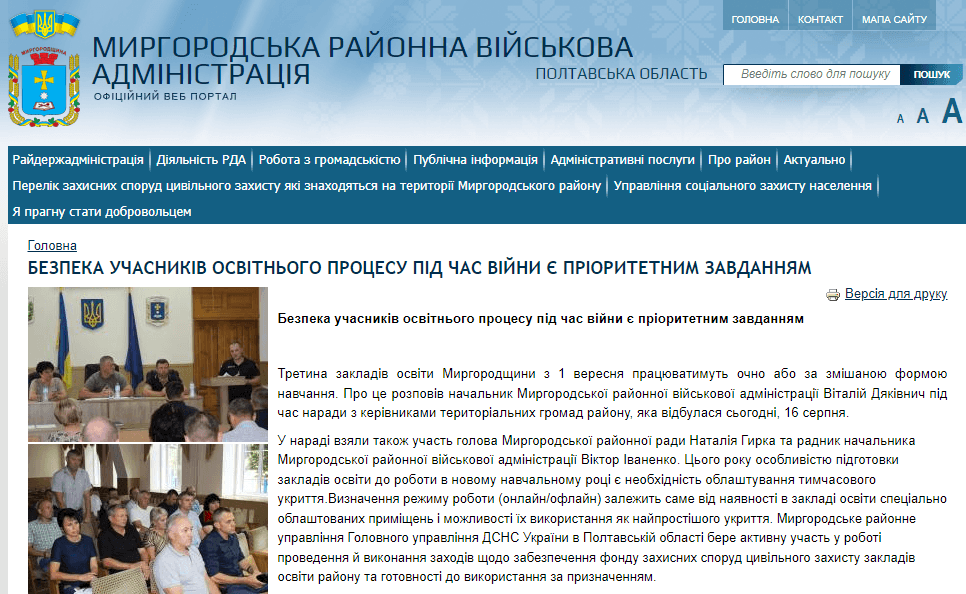 Про це стало відомо з публікації про нараду з керівниками територіальних громад району на сайті Миргородської районної військової адміністрації 16 серпня.