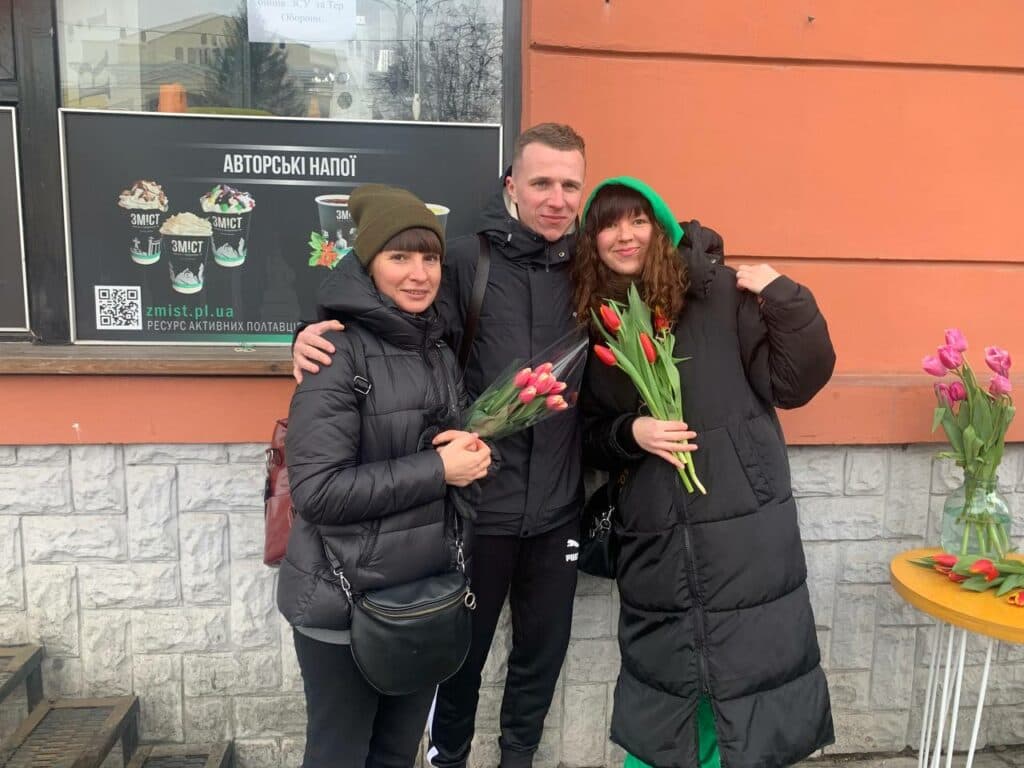 8 березня у Полтаві провели святкову акцію на підтримку Збройних Сил України та тероборони Полтавщини. Волонтери організували продаж квітів, щоб зібрати кошти на потреби української армії.