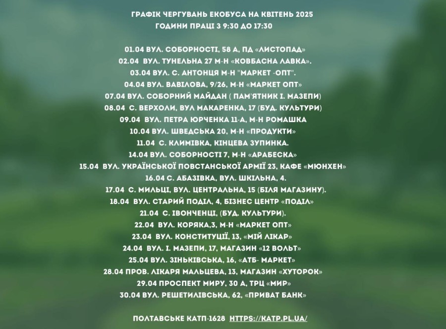 Нагадаємо, що у квітні екобус у Полтавській громаді працює з 9:30 до 17:30. У нього всі охочі можуть здати відходи, що потребують спеціальної утилізації: