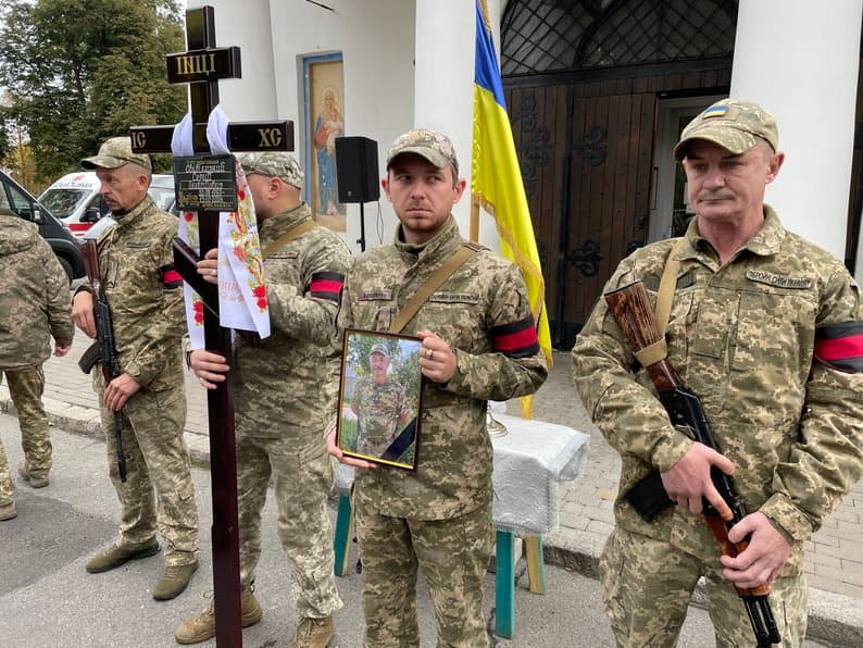 З полеглими воїнами попрощалися біля Свято-Успенського собору 16 жовтня. Про це повідомили на сайті Полтавської міської ради.