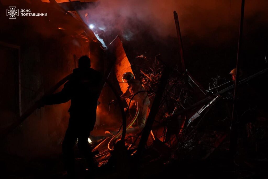 Унаслідок падіння уламків російських безпілотників сталися пожежі та руйнування у приватних житлових будинках та господарчих спорудах. Про це повідомили в ДСНС Полтавщини 1 листопада.