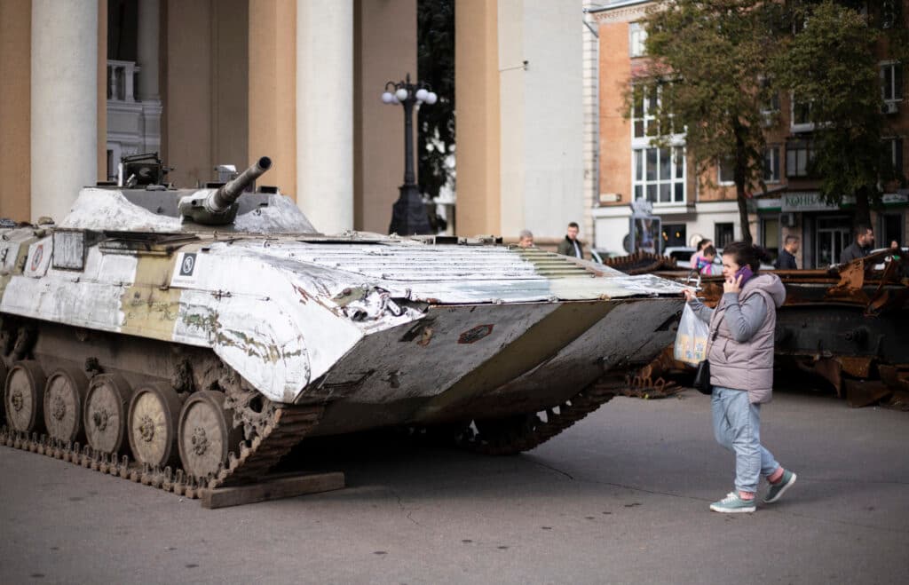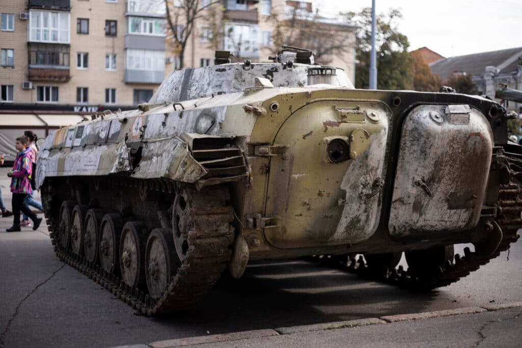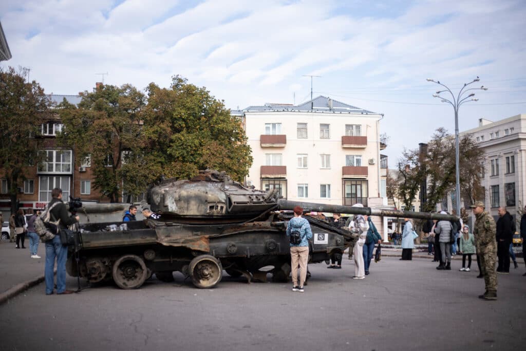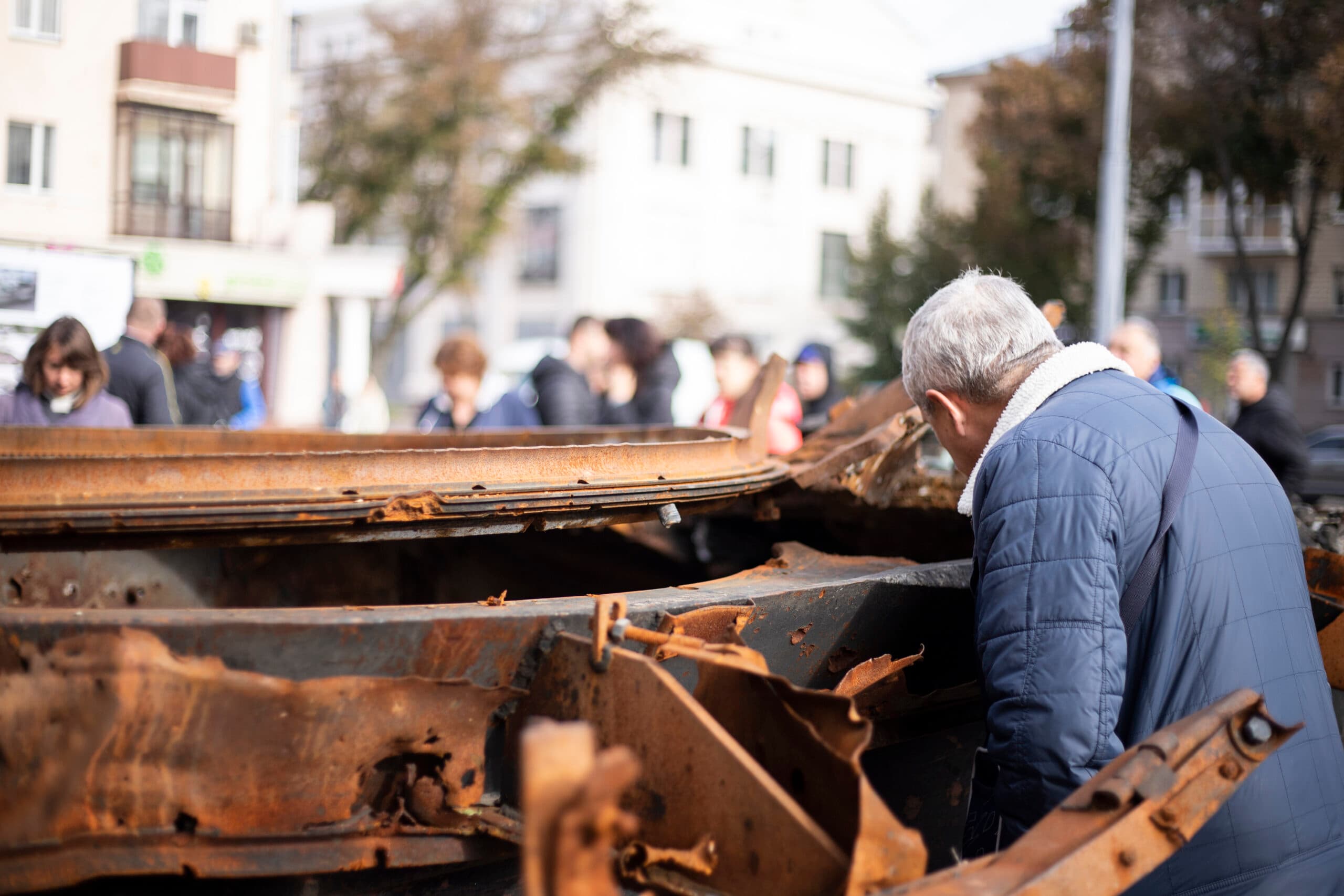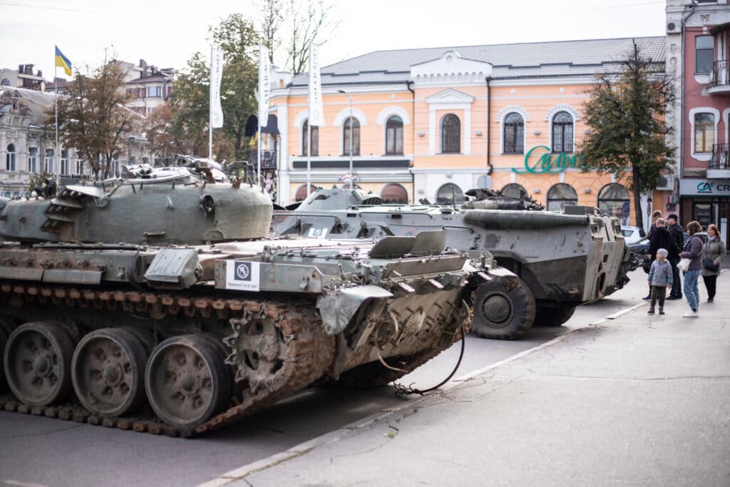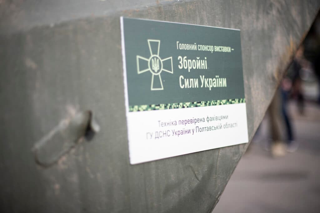 До дня міста у Полтаві представили виставку російської техніки, яку українці захопили та пошкодили на півночі Полтавщини, коли із Сумщини зайшла російська 4-та гвардійська танкова кантемирівська дивізія.