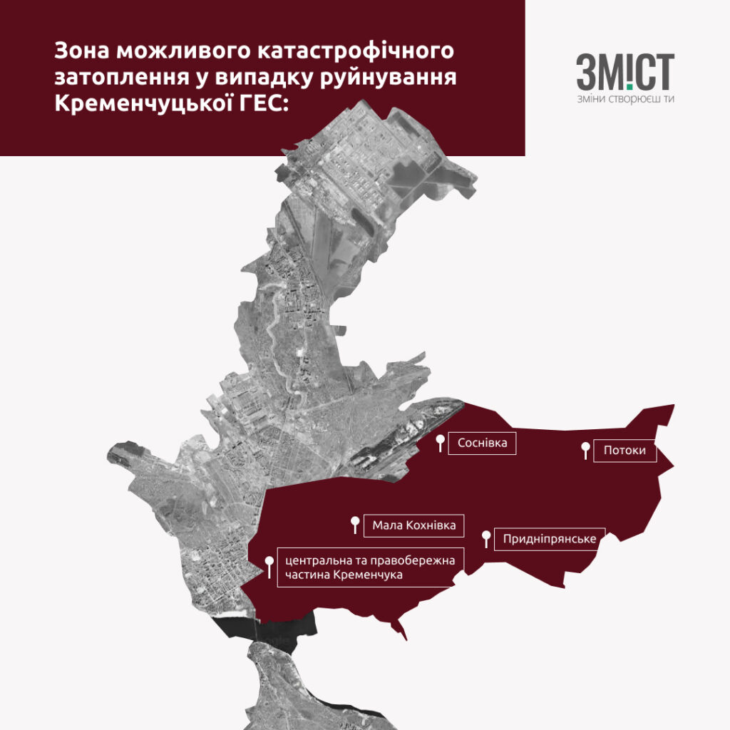 Зі свого боку, у Кременчуцькій громаді 18 листопада повідомили, що можливе руйнування ГЕС якої може призвести до техногенної аварії. До зони можливого катастрофічного затоплення територіально потрапляють одразу кілька частин Кременчука.