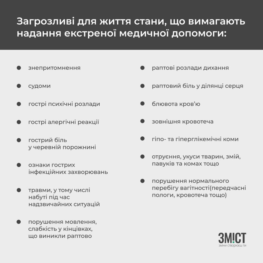 - надання допомоги в умовах палати/відділення інтенсивної терапії у разі перебування в загрозливих для життя станах.