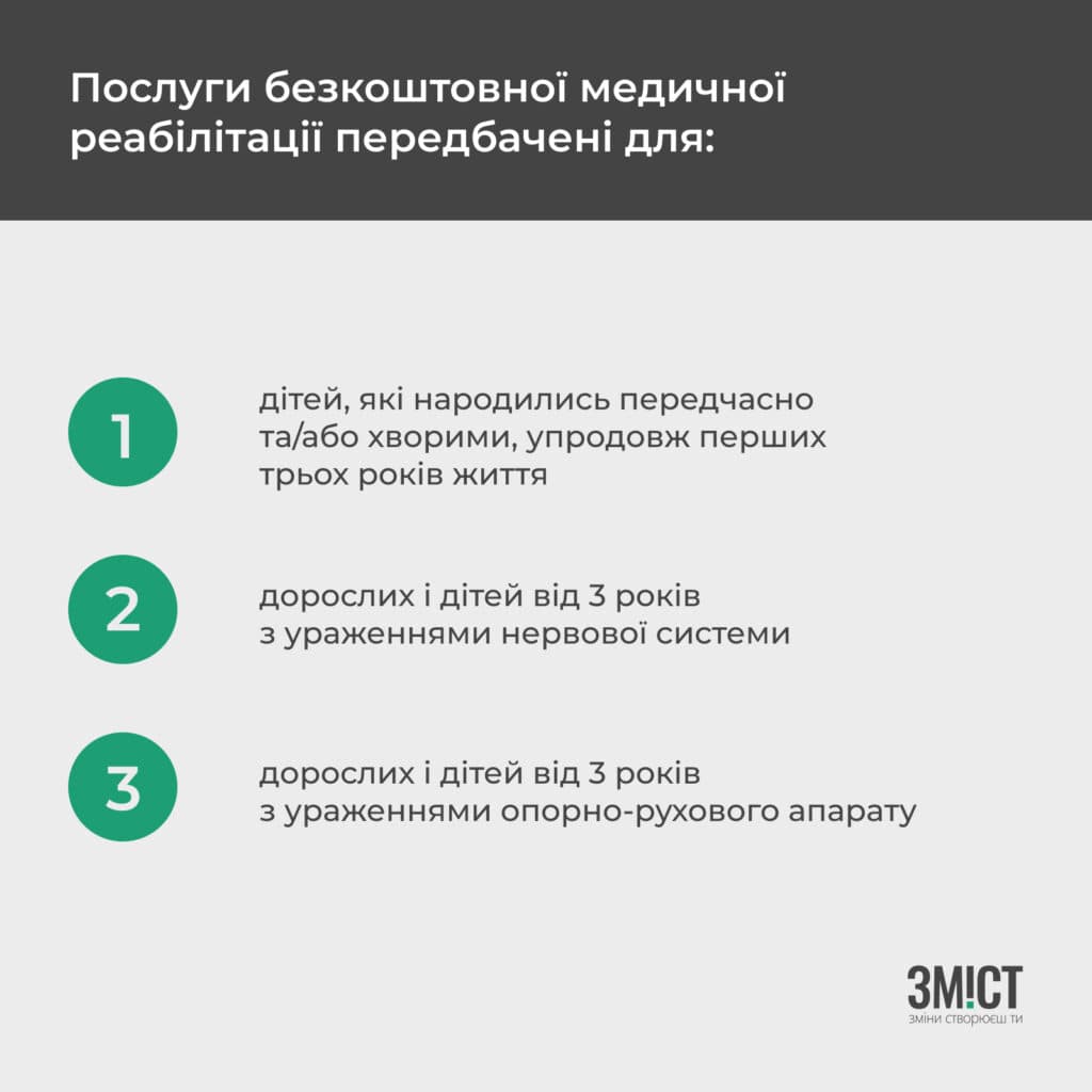 - послуги з медичної реабілітації без госпіталізації.