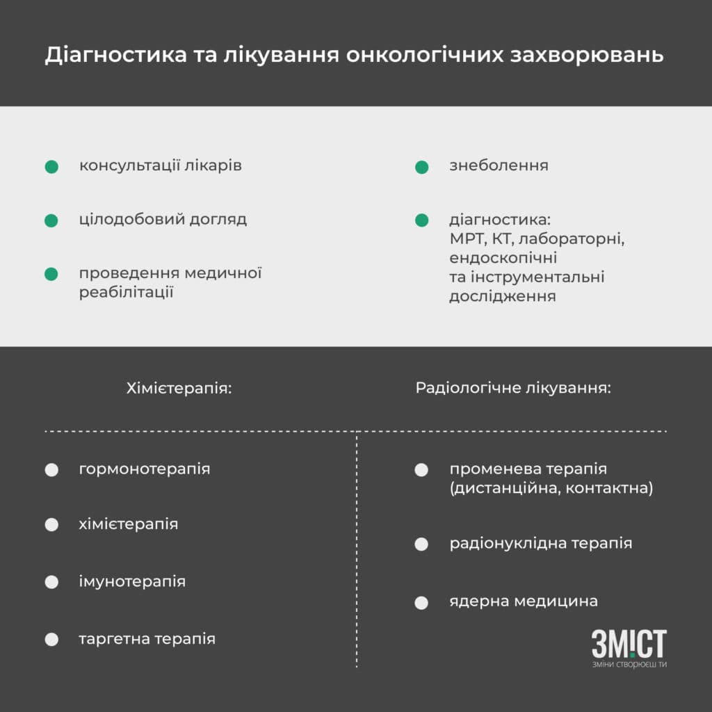 Пакет «Діагностика та хімієтерапевтичне лікування онкологічних захворювань у дорослих та дітей» передбачає: