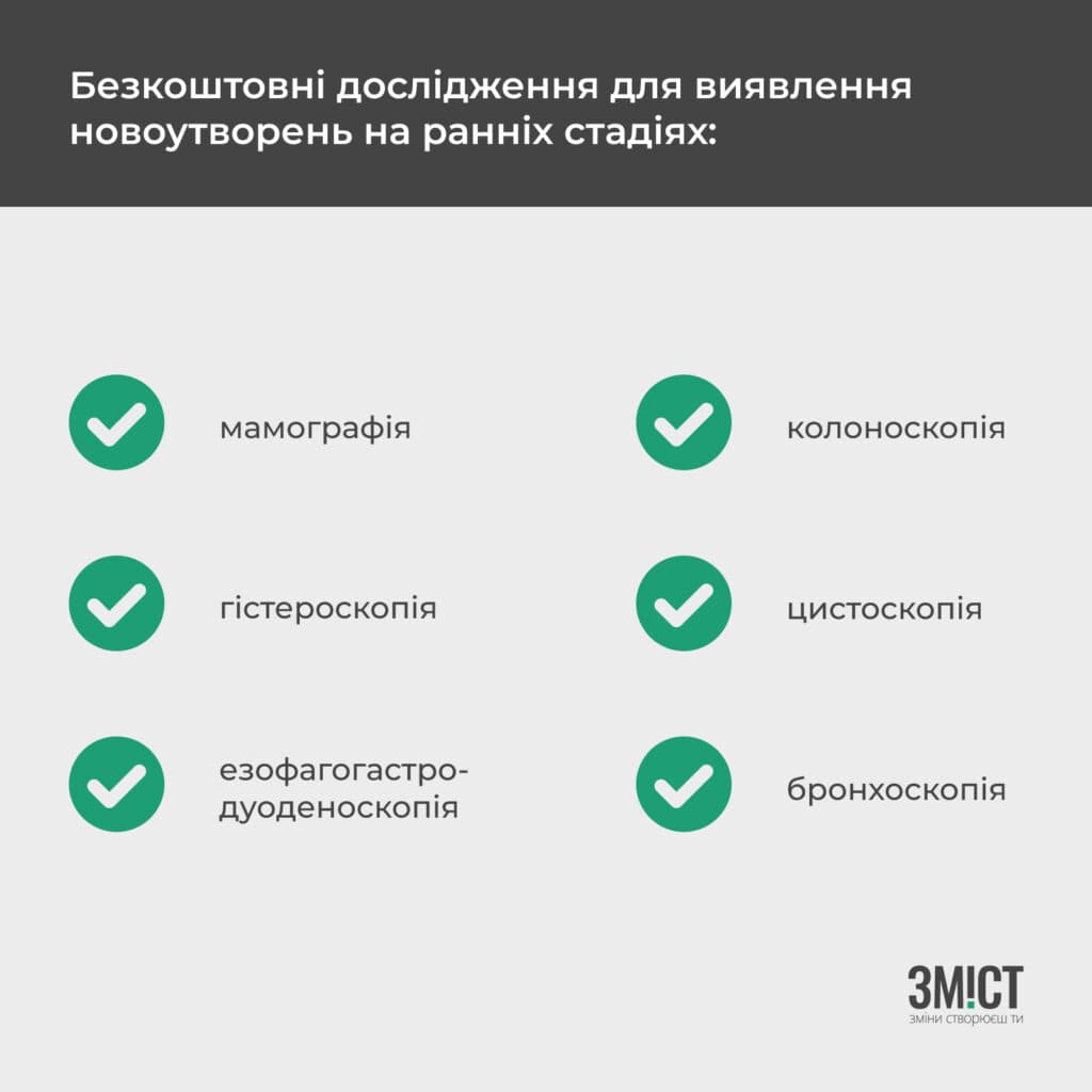 У межах Програми медичних гарантій є пріоритетні послуги, які дозволяють діагностувати новоутворення на ранніх стадіях. НСЗУ платить за проведення мамографії, гістероскопії, езофагогастродуоденоскопії, колоноскопії, цистоскопії та бронхоскопії за підвищеним тарифом. Це має сприяти модернізації обладнання закладів і підвищенню якості медичної допомоги.
