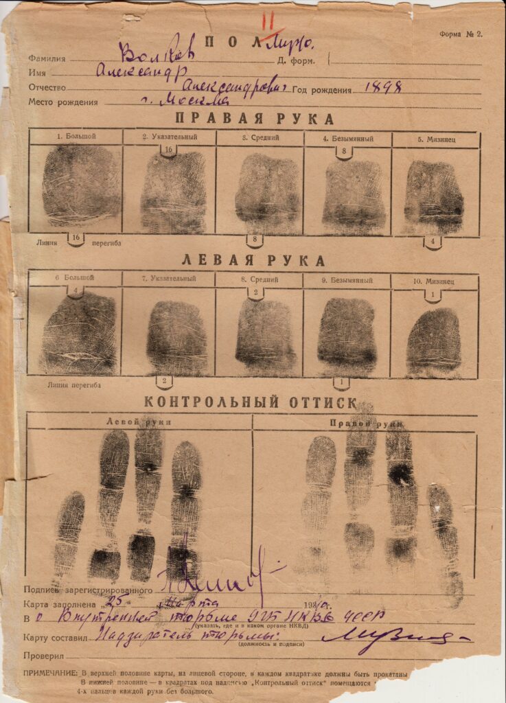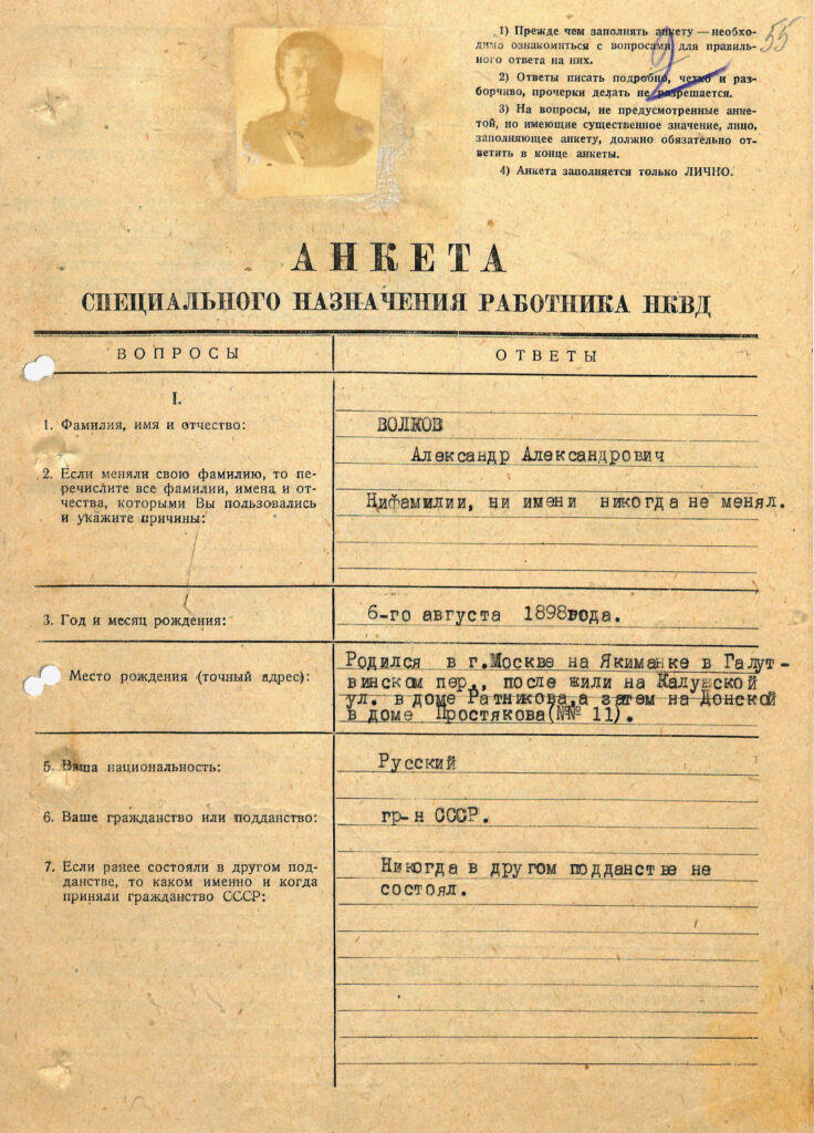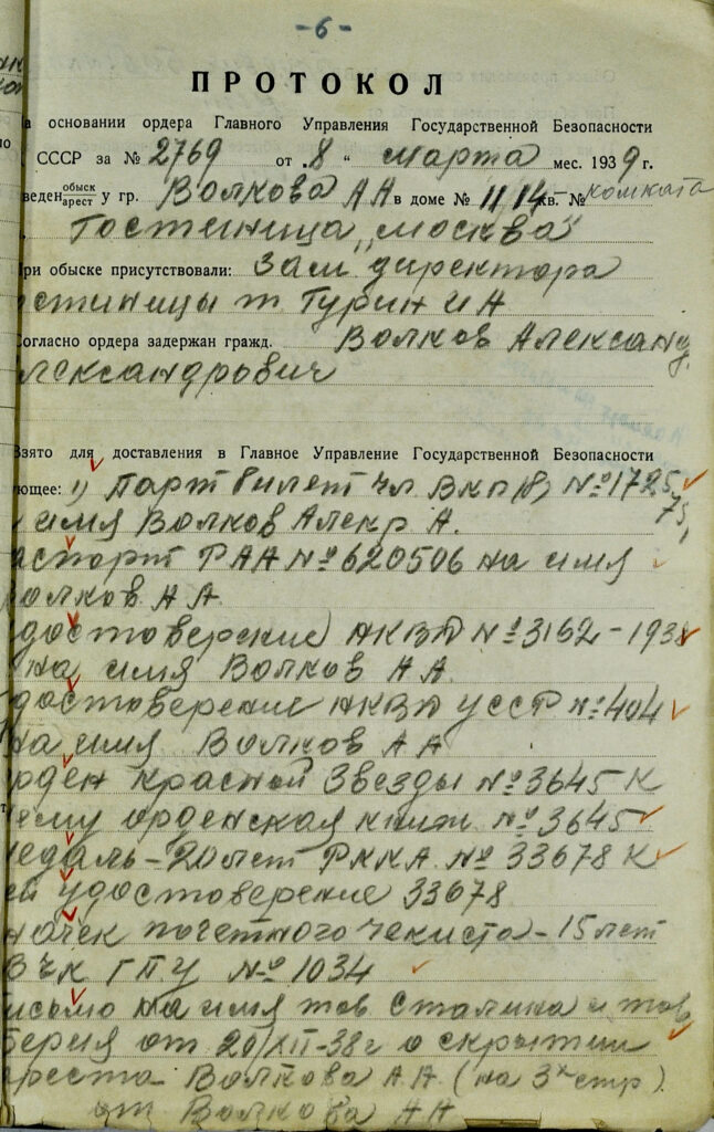 «З усією відвертістю заявляю слідству, що за своє 2-місячне перебування в УНКВС по Київській області я працював чесно й добросовісно, адже після звільнення з-під варти ще не позбавився від побоювань повторного арешту», – каже Олександр Волков на допиті у травні 1939 року.