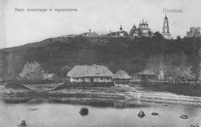«Довго дивився він на монастир та його дивовижні околиці; потім глянув на сонце і, махнувши рукою, пішов стежкою в яр із наміром побувати у святій обителі. Повернувши вправо на обраний шлях, він незабаром опинився на вбитій колесами неширокій дорозі, що витає зеленим луком між старими вербами й веде теж до монастиря». (переклад з російської)