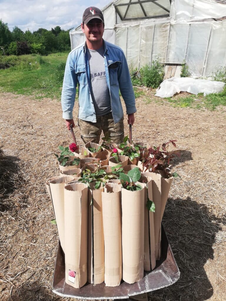 Так постало завдання створити естетичну й функціональну упаковку, яка дозволить доправляти клієнтам саджанці поштою живими й неушкодженими. Серед безлічі згенерованих варіантів обрали один і залучили місцевого виробника картону. Згодом саме за фірмовим пакуванням і підходом до клієнтів Сад Квілінського вирізняли з-поміж виробників.