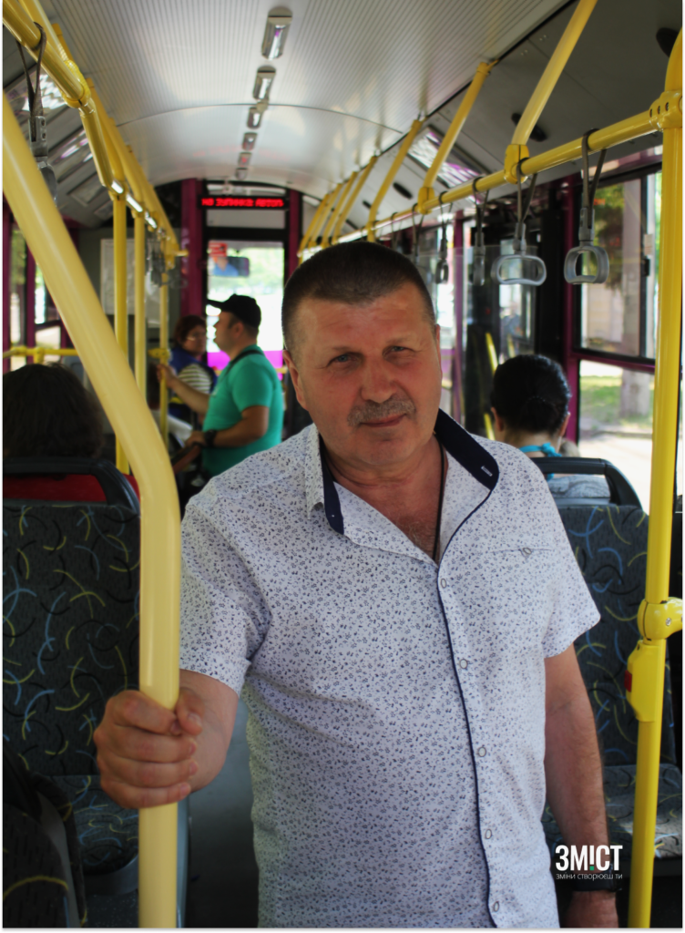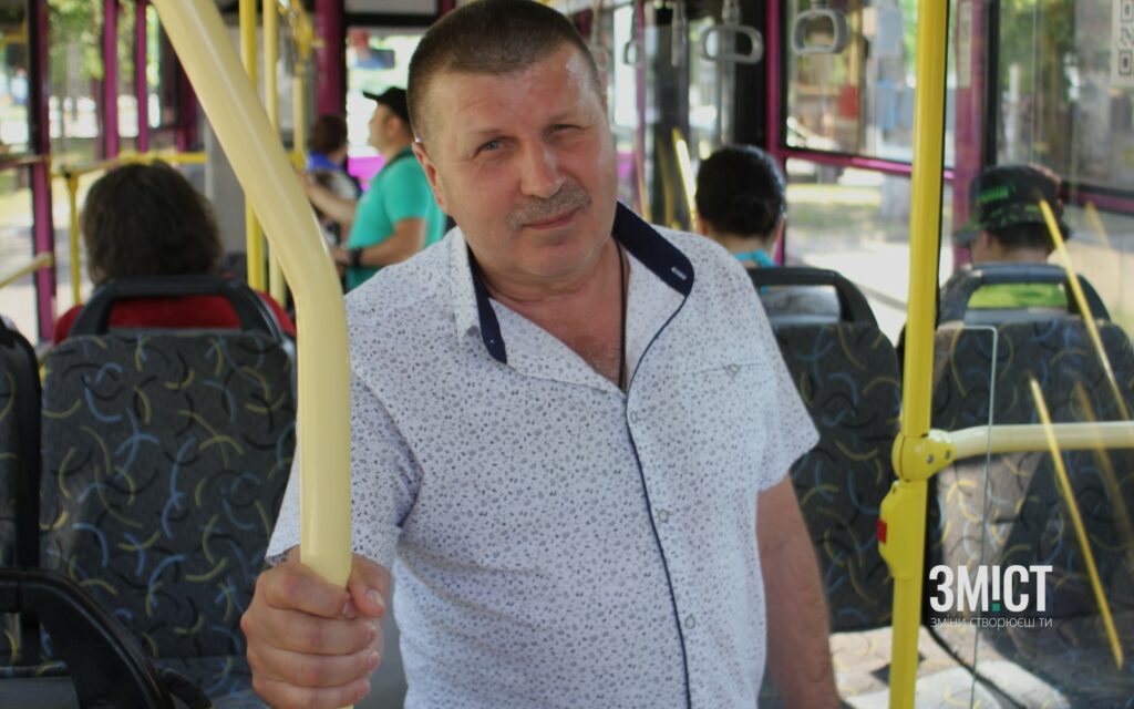 Олександр Вертюх заходить до тролейбусу. Понад 20 років він керує Кременчуцьким тролейбусним управлінням імені Левітана, але громадським транспортом користується рідко. Під час інтерв’ю ЗМІСТу йому випала така нагода. Вартість проїзду – 10 грн, але кондукторка не бере грошей. Директор сідає на одне з місць й запитує: «Ну як вам?».