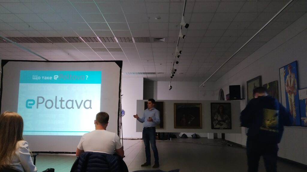 Під час презентації застосунку Юрій Ромашко розповів, як працюють перші функції E-Poltava.