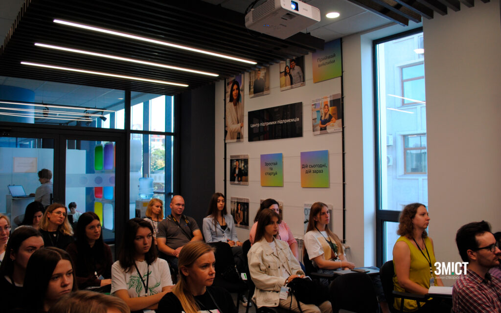 На заняття прийшли 20 людей – це ВПО з Харківщини, Луганщини, Донеччини та інших міст, де тривають активні бойові дії. Зареєструватися та відвідати захід могли всі охочі, заповнивши заявку на сайті Дія.Бізнес. Є учасники, які були дотичні до маркетингу, мають власний бізнес, який треба просувати або ж просто хочуть спробувати себе в професії.