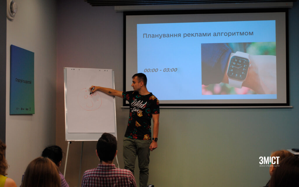 Під час заняття тренер розповідав про головні аспекти просування продукту в Facebook та Instagram. Зокрема наголосив на особливостях алгоритмів соцмереж, які можуть змінюватися і для успішного виконання завдань потрібно їх розуміти. Також розповів про складові ефективної таргетованої реклами: