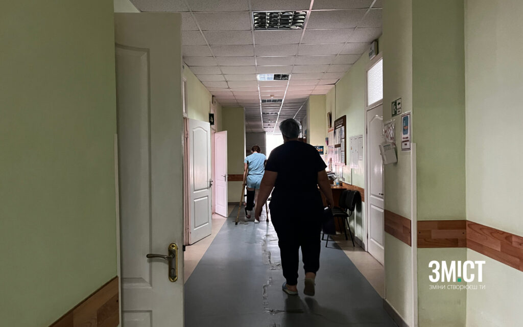 На ґанку лікарні людно: пацієнти травматологічного відділення насолоджуються ранковою прохолодою. Вони дісталися сюди на власних ногах, милицях чи кріслі колісному, бо в стінах за їхніми спинами для цього зробили все можливе.