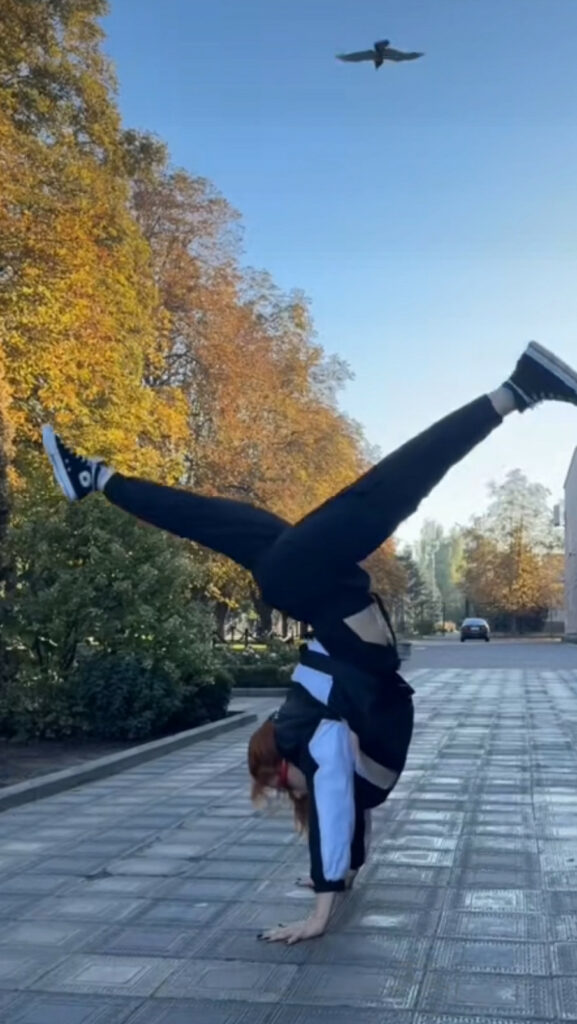 «Спочатку це було хобі, а потім я зрозуміла, що відстаю від інших дівчат, які займаються більше. Зрозуміла, що треба йти качатись, а в залі це було дорого, абонемент брати, і мені не дуже хотілось. Думала, нашо качатись в залі, якщо можна просто на вулиці. І я якось качалась-качалась, потім думаю: почну знімати це в сторіз. Зрозуміла, що мені якось дуже весело від цих відео самій, і думаю: а якщо попробувать з цього ще прикалуваться».