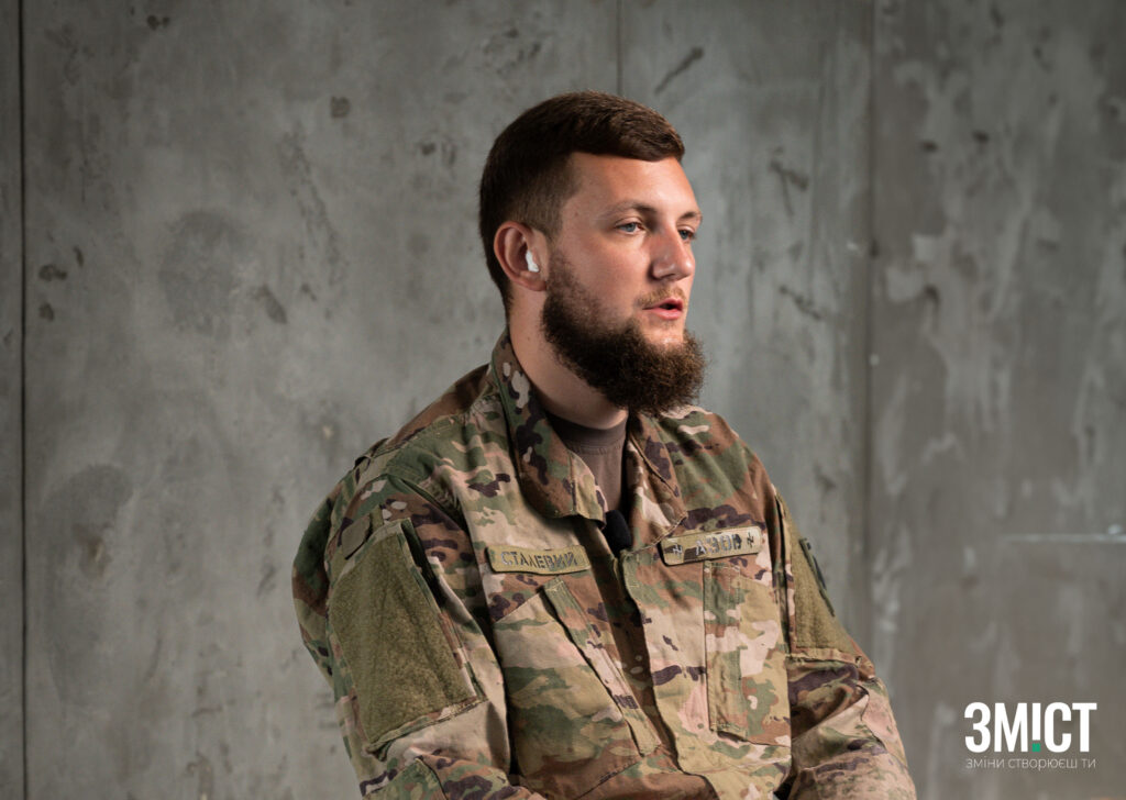 «Зараз не 22 рік, коли формувалося багато нових підрозділів і командування подекуди могло бути не таке компетентне, як зараз. Нині вже всі працюють на доволі високому рівні. Так, штурмові завдання є, і відбиття штурмів, але є хлопці, які мобілізуються саме в штурмовики. Проте потрібні й зварювальники, водії. От у нас до підрозділу, він саме розширяється. Я можу прямо сказати, що якщо ви прийдете електриком, потрібні автоелектрики. Усі цивільні спеціальності потрібні армії, “Азову”. Це ж не так, що вас вдягли й усе: ви просто три роки воюєте».