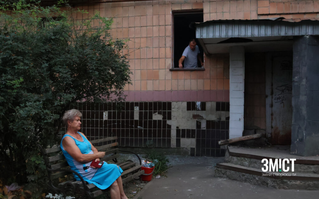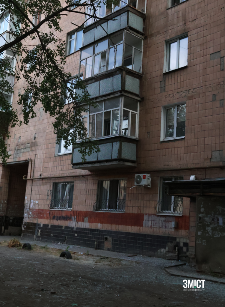 У будинках довкола немає вікон. Троє чоловіків намагаються закрити вікна до квартири Дмитра бодай деревиною, щоб до квартири не могли потрапити мародери. Власник каже, що 2 роки їм «щастило», що не було прильотів, хоч поряд був навчальний обʼєкт.
