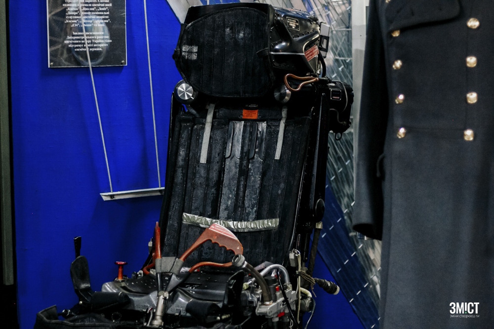 Також у цій залі є крісло, яке спеціально розробили для космічного корабля «Буран». Ірина Пістоленко каже, що цим кораблем і в цьому кріслі мав керувати льотчик Анатолій Левченко. Крісло передав до музею академік Гай Северин.