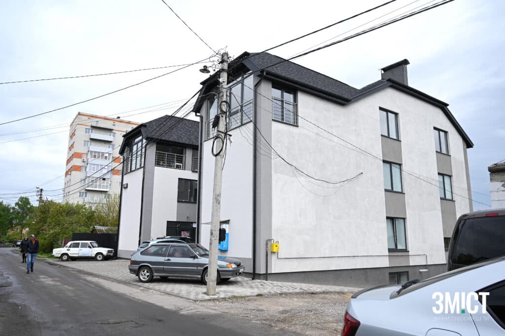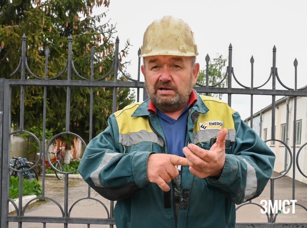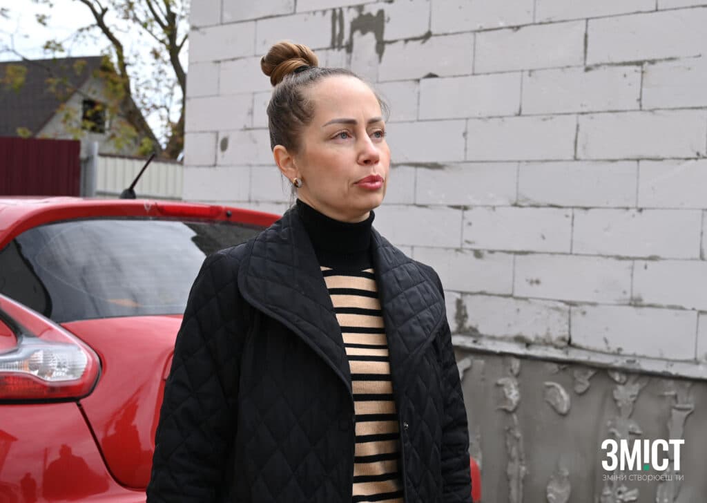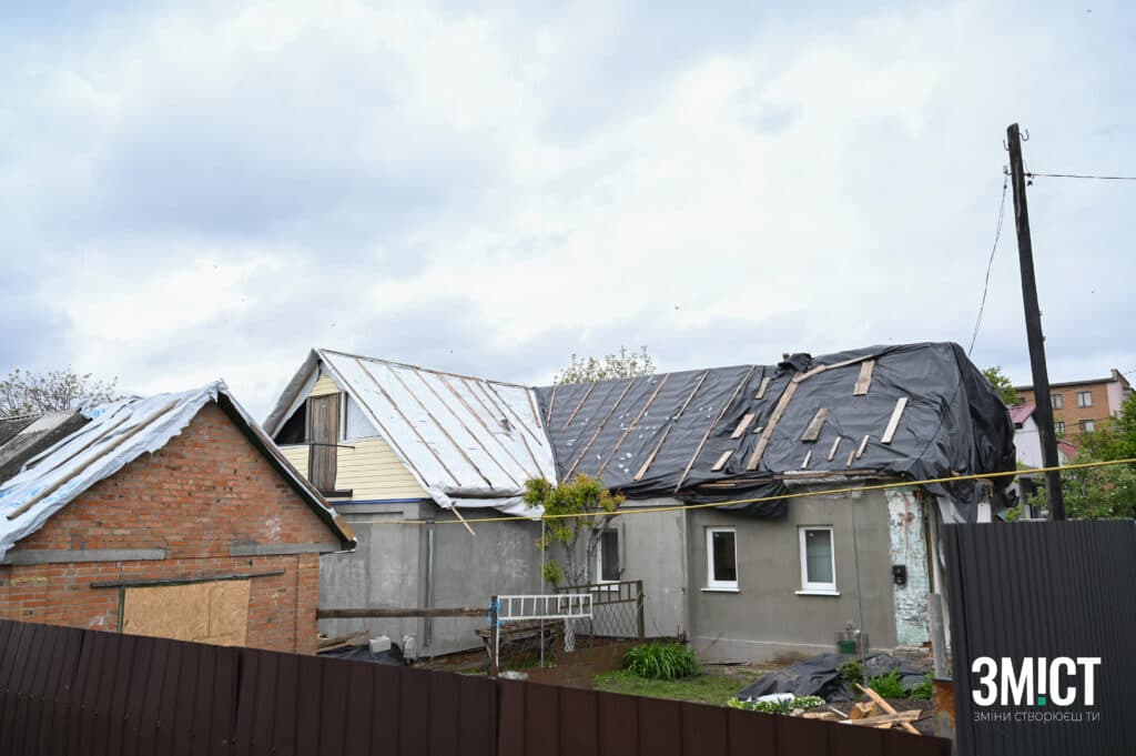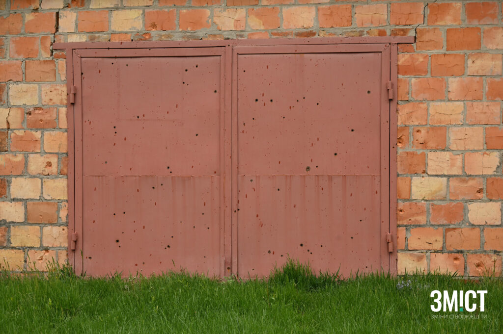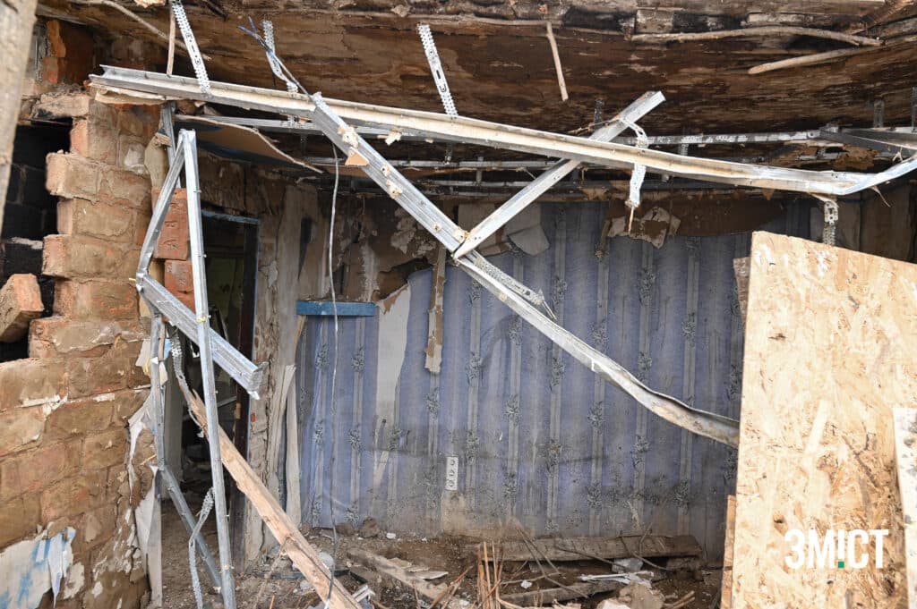 Прямуємо вулицями міста далі, заїжджаємо в район, де переважно приватні будинки з присадибними територіями. Одна за одною мерехтять будівлі, серед них вирізняються, ті що не мають вікон та подвір’я, де ще не встигли прибрати наслідки обстрілу, який стався у ніч з 6 на 7 жовтня 2023 року. Тоді ракета влучила у водойму, але вибухова хвиля потрощила вікна та зняла дахи житлових будинків навколо.