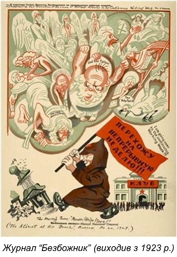 На початку свого приходу до влади більшовики намагалися знищити церкву як суспільну інституцію, але коли усвідомили неспроможність викорінити її, вирішили дискредитувати. Для цього вони вдалися до антирелігійної пропаганди, що мала на меті витіснити релігію з життя суспільства.