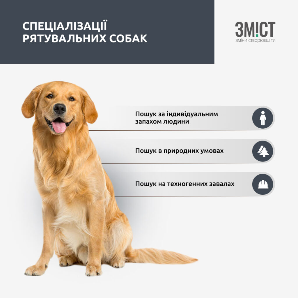 «Одна собака не може бути універсальною для виконання всіх завдань. Тому ми націлюватимемо наші кінологічні розрахунки саме на пошук постраждалих і загиблих під завалами», – говорить Андрій Хижняк.