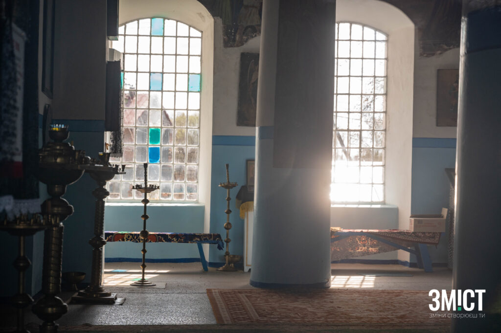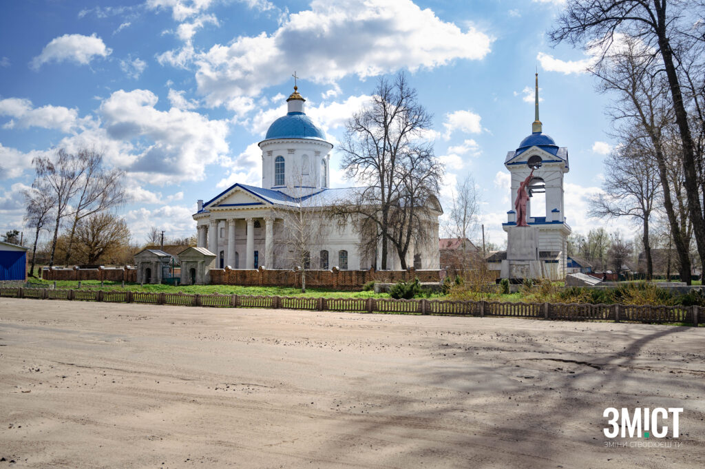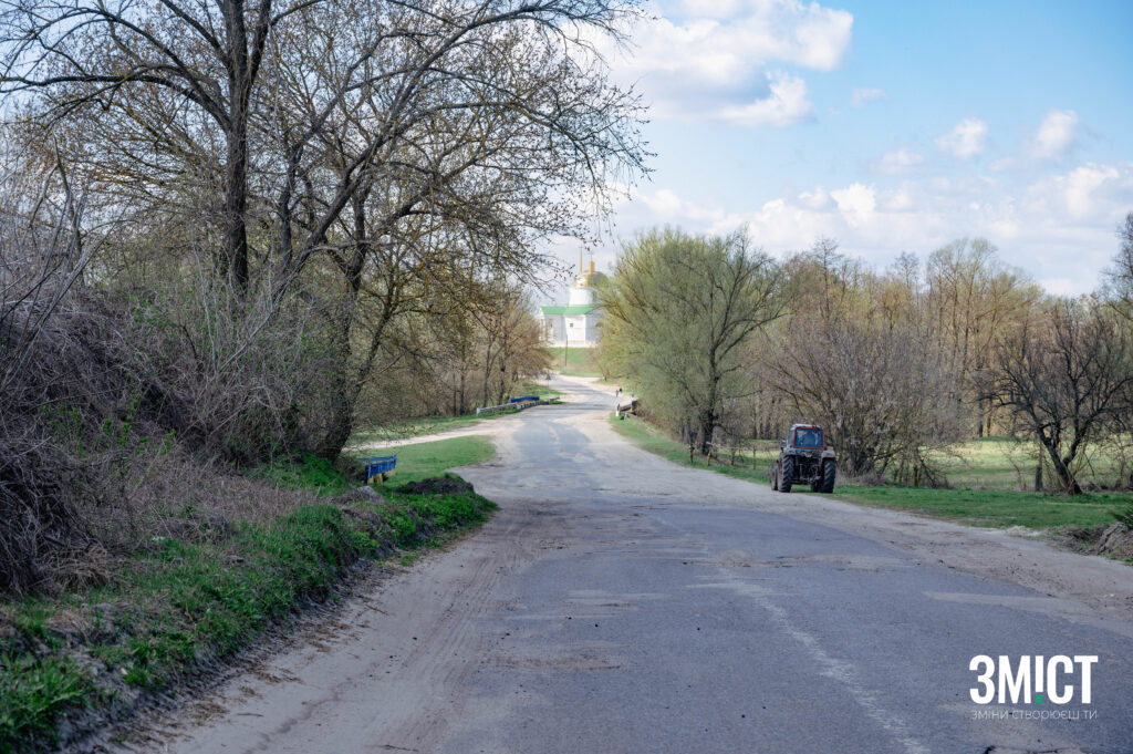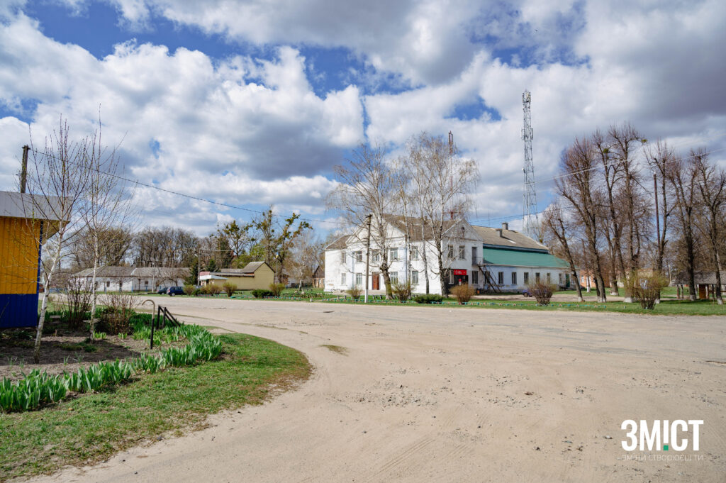 Довкола церкви розкинулося село з його магазинами, ЦНАПом, хатами й кількома багатоповерхівками. На одному з в’їздів раніше була заправка, де росіяни внадилися красти пальне. Її разом з окупантами й соляркою довелося спалити.