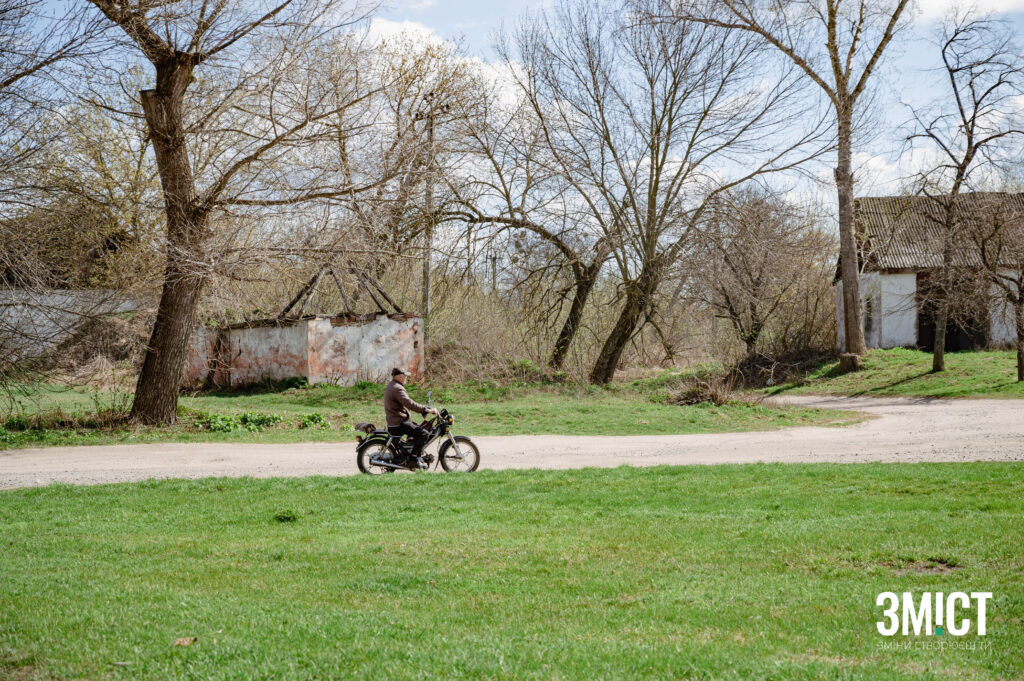 «Стьопа, весна! Работать нада», – на ходу видає своєму знайомому чоловік на велосипеді, минаючи це місце. Перекинувшись кількома словами, він їде дорогою далі. Центральною вулицею села гуркоче вантажівка, а за нею повагом суне трактор.