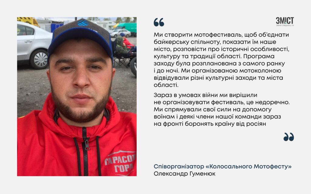 «Зараз деякі організатори проводять фести під прикриттям зборів для ЗСУ. Але ми ухвалили рішення не влаштовувати мотофест під час війни. Ми займаємося допомогою для ЗСУ до того ж частина членів нашої команди зараз на фронті».