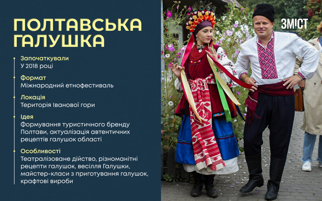 Якщо говорити про один з наймасштабніших гастрофестивалів області, то перше, що спадає на думку – «Полтавська галушка». Його запатентували та вперше провели у 2018 році в Полтаві.