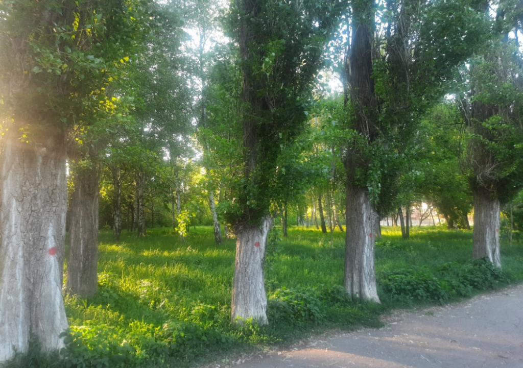 До прикладу, у Парку Скорботної Матері залишили червоні мітки на стовбурах дерев. Ймовірно, саме так комунальники позначають дерева, які планують спиляти. Але якщо засохлий клен, уражений шкідниками біля основи стовбура, справді виглядає аварійним, то високі тополі не мають цих видимих ознак.