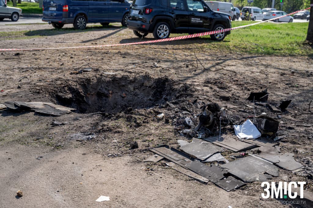 Цього разу під прицілом опинилися два райони – Шевченківський та Подільський. На місцях вибухів уламки, понівечені автівки, пошкоджені фасади багатоповерхівок і зруйновані приватні будинки. У Подільському районі один із таких будинків зруйновано, також пошкоджені приміщення підприємства.
