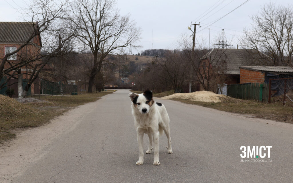 Рухаємося вулицею далі, випробовуючи метод виклику господаря через валування собак. Після кількох хвилин топтання під ворітьми до нас виходить невисокий чоловік у піксельній куртці. На фронті він водить в атаки групи бійців, проте через поранення останній час перебуває вдома. Погріб і подвір’я господаря сухі, так ніби неподалік не хлюпочуться води мутного ставка глибиною в три метри. У сусідньому дворі зеленіє ряска на поверхні двох великих калюж.