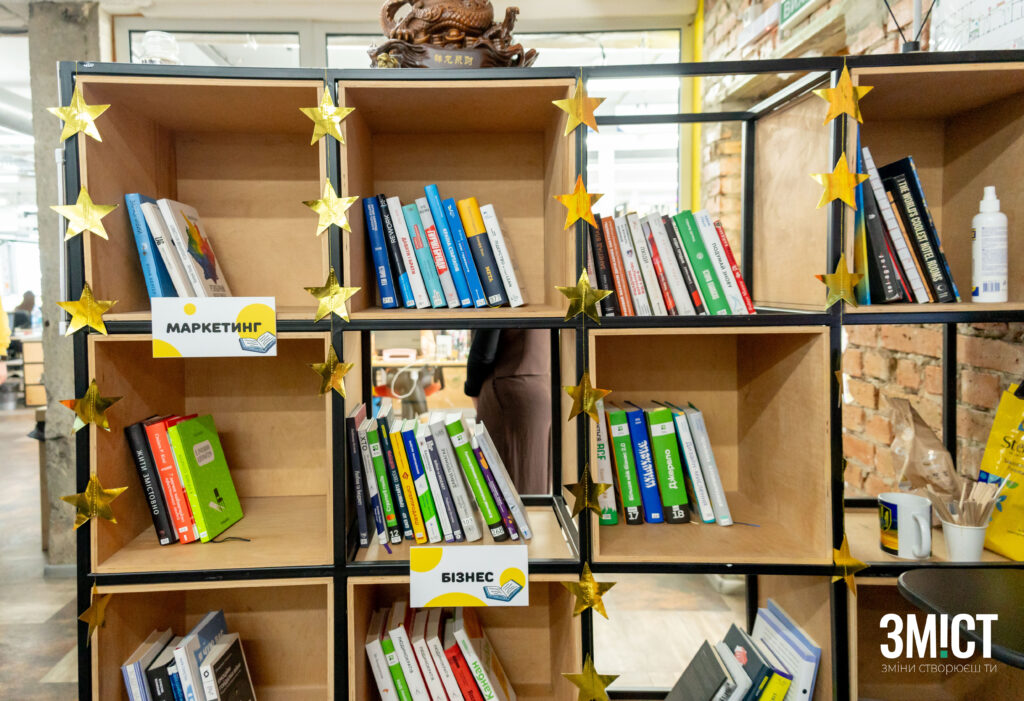 Також у приміщенні розташували склад та розподільчий центр. У відділі є стелаж «Еней», який швидко збудували. Це алюзія до головного героя твору Івана Котляревського.