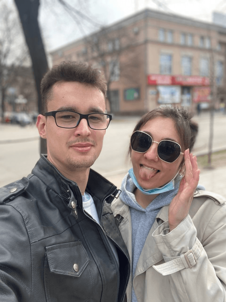 Євгеній Грицай працював у магазині побутової техніки в ТЦ «Амстор». Кременчук став містом кохання для нього та його дружини Сабіни, які вирішили створити родину в розпал пандемії Covid-19. Тоді жінка повернулася з-за кордону до рідного міста, а її колега з минулої роботи вирішив написати та поновити спілкування: