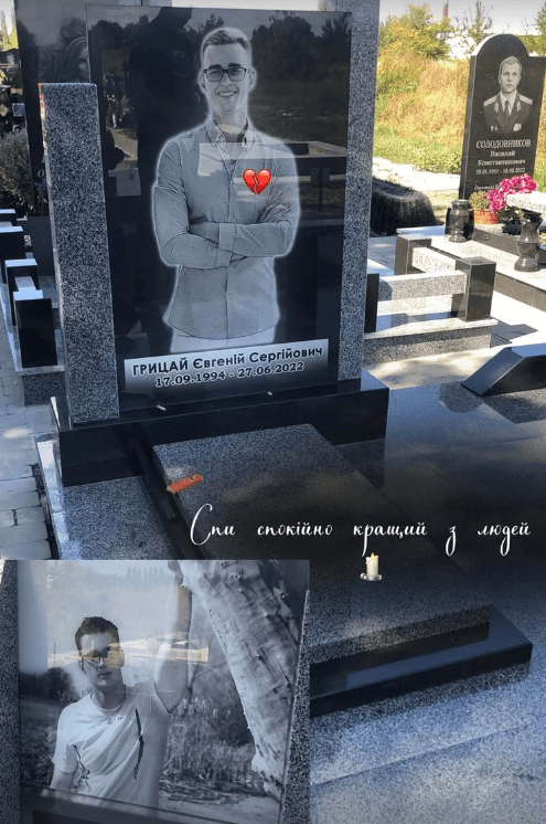 27 червня у Євгенія Грицая був вихідний, однак чоловіка викликали на роботу. Після влучання ракети його мама, дружина й тітка намагалася зателефонувати до нього. Спочатку чоловік був у зоні доступу, потім зв'язок зник, а пізніше телефон вимкнувся. Тіло Євгенія ідентифікували серед загиблих.